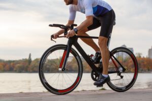 Triathlete,Rides,Along,Waterfront,Path,During,Autumn,Afternoon,In,A